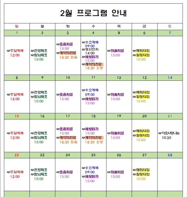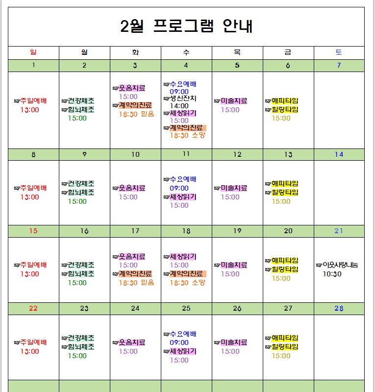 26년 2월 프로그램 일정표